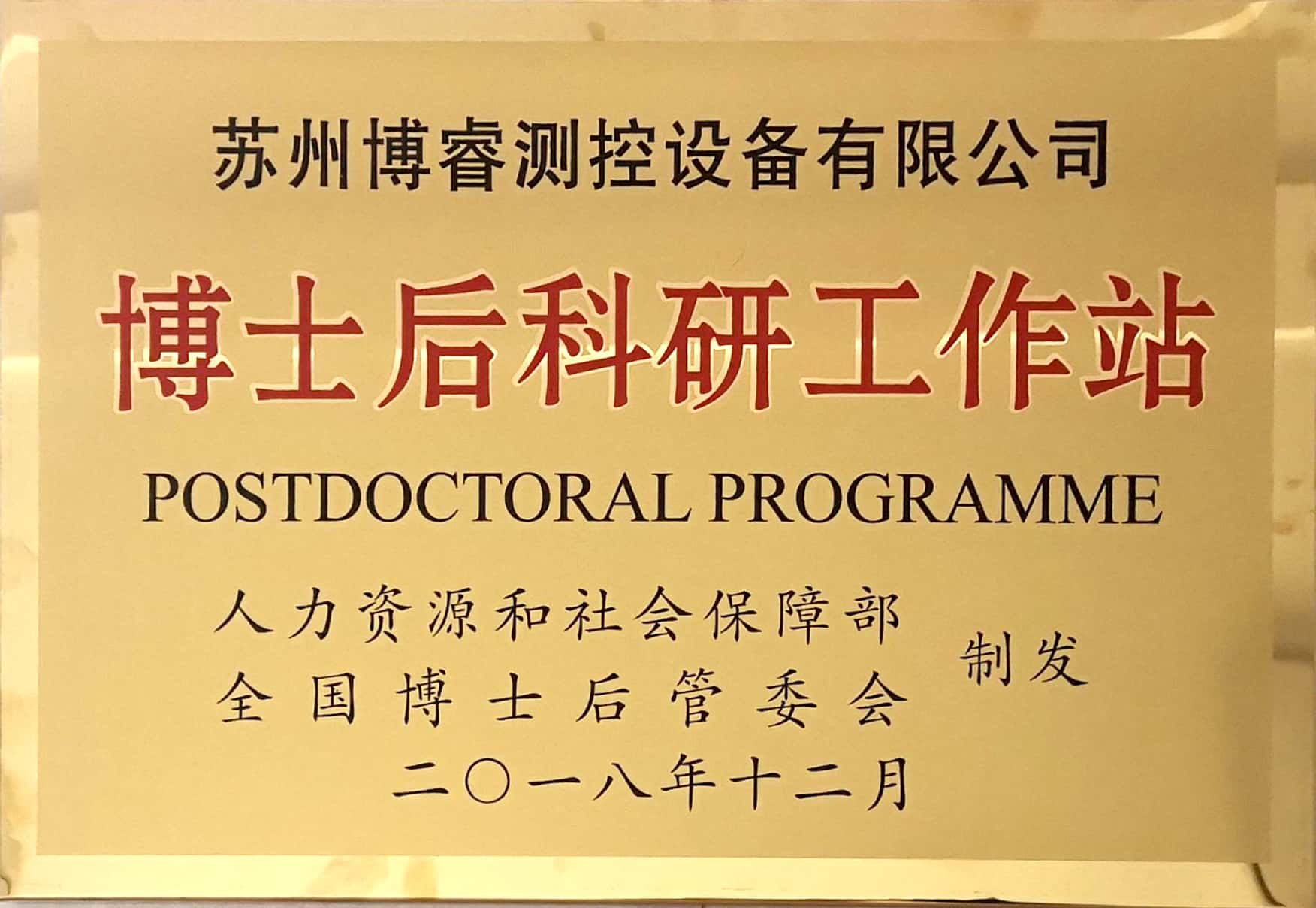 經(jīng)國(guó)家人力資源和社會(huì)保障部及全國(guó)博士后管理委員會(huì)審核批準(zhǔn),蘇州博睿測(cè)控設(shè)備有限公司正式獲批設(shè)立國(guó)家博士后科研工作站。